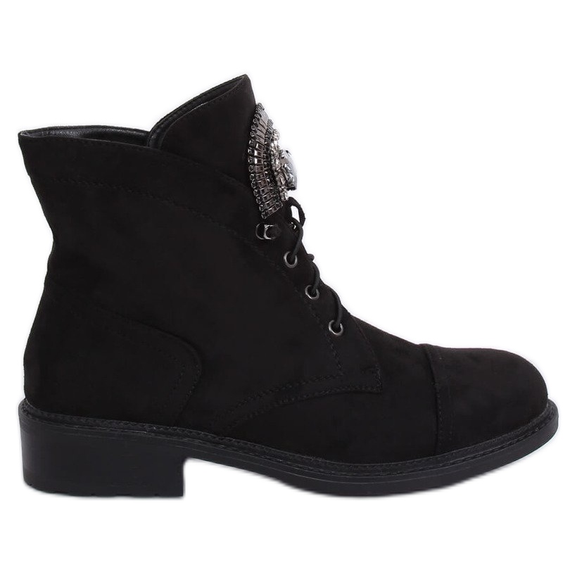 Díky šněrování se boty E9315 Black snadno přizpůsobí vašim nohám, což zajišťuje stabilitu při chůzi. Kamínky jako další dekorace dodají trochu lesku, který zpestří jednoduchý styling.
