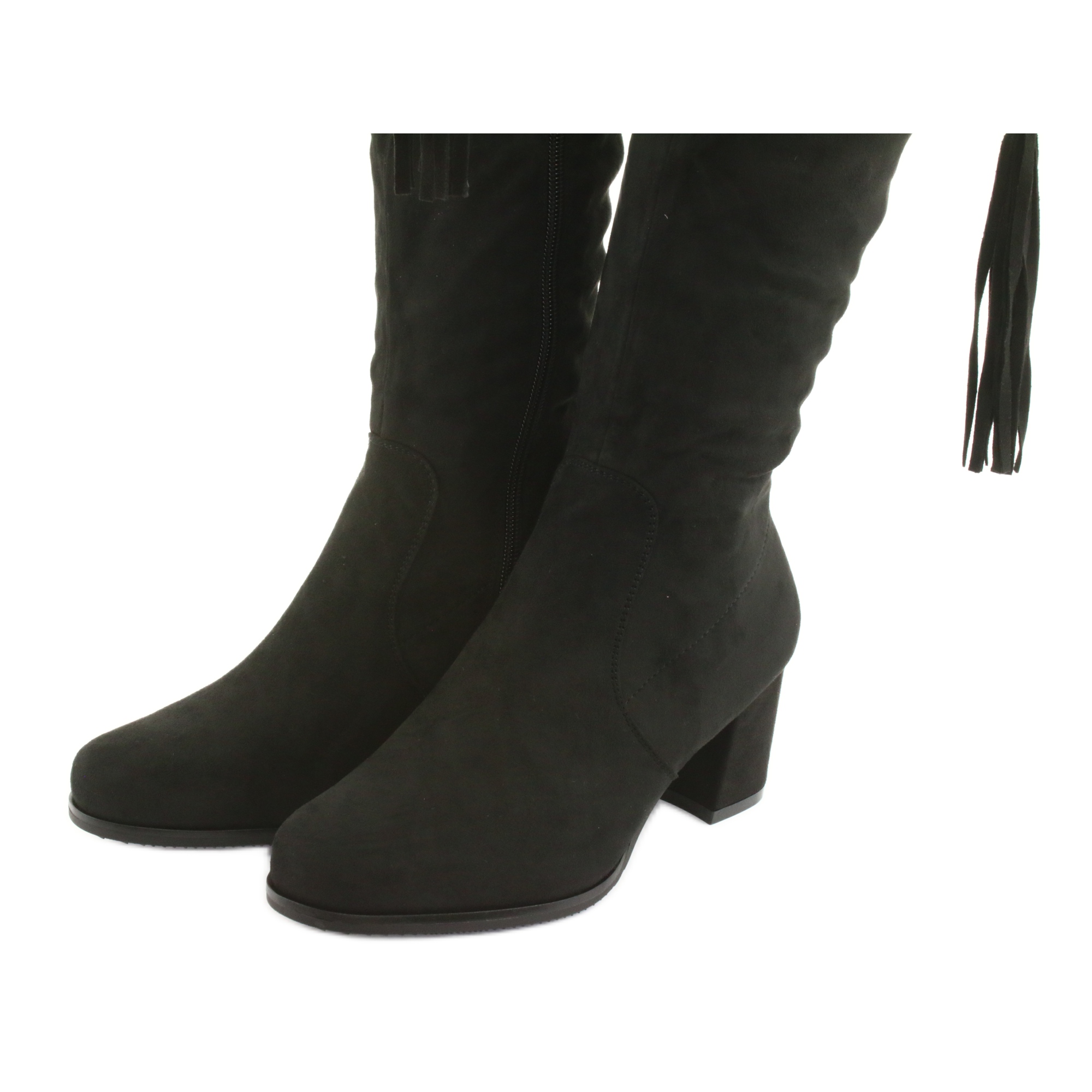 Objevte eleganci a pohodlí na každém kroku s černými semišovými kozačkami Filippo 514 Tyto stylové dámské kozačky nad kolena jsou vyrobeny z vysoce kvalitní ekologické semišové kůže, díky které jsou estetické i ekologické.