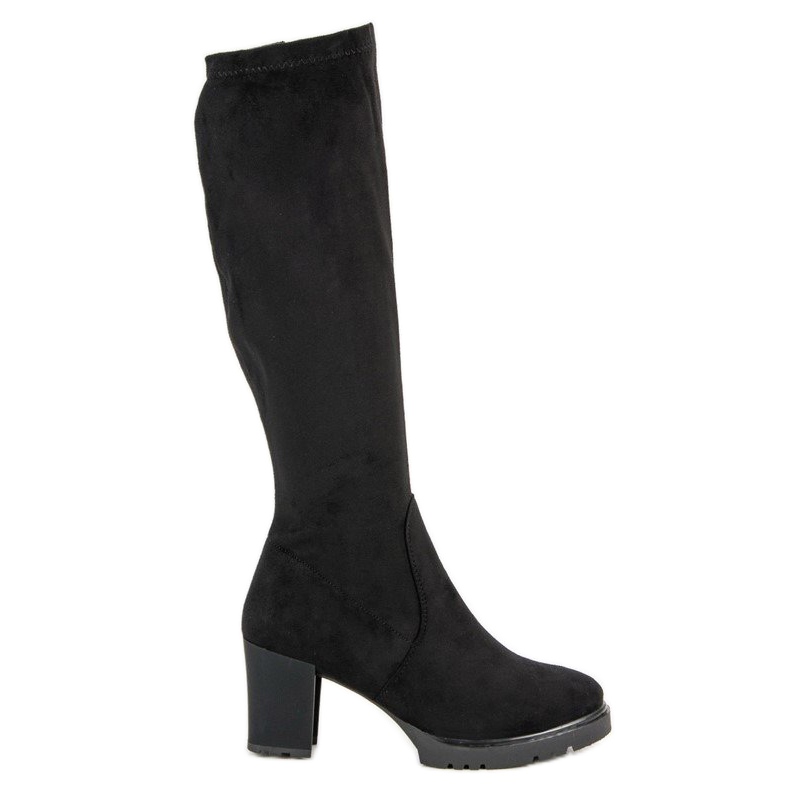 Černé semišové boty jsou perfektní volbou pro ženy, které chtějí spojit eleganci s pohodlím. Vyrobeny z ekologického semiše, vypadají mimořádně stylově a odpovídají nejnovějším módním trendům. Tyto klasické kozačky ke kolenům dokonale zdůrazní ženskou postavu a vysoký 8,5 cm vysoký podpatek nohy zeštíhlí a zeštíhlí.