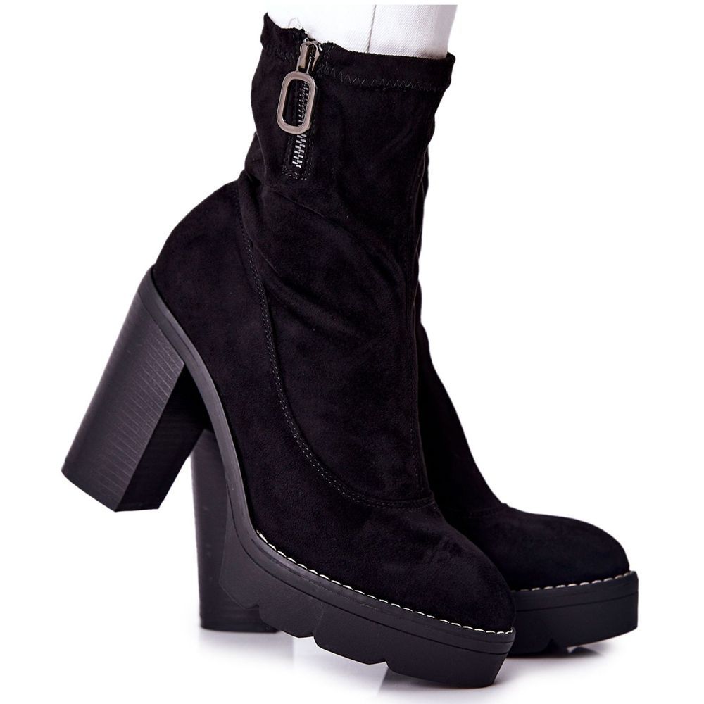 Představujeme PG1 Semišové kotníkové boty v elegantní černé barvě, které budou dokonalým doplňkem vašeho šatníku! Tyto kotníkové boty vyrobené z vysoce kvalitního ekologického semiše spojují styl a pohodlí. Masivní 10,5 cm vysoký blokový podpatek a 3 cm platforma tento model nejen skvěle vypadá, ale také zajistí stabilitu při nošení.