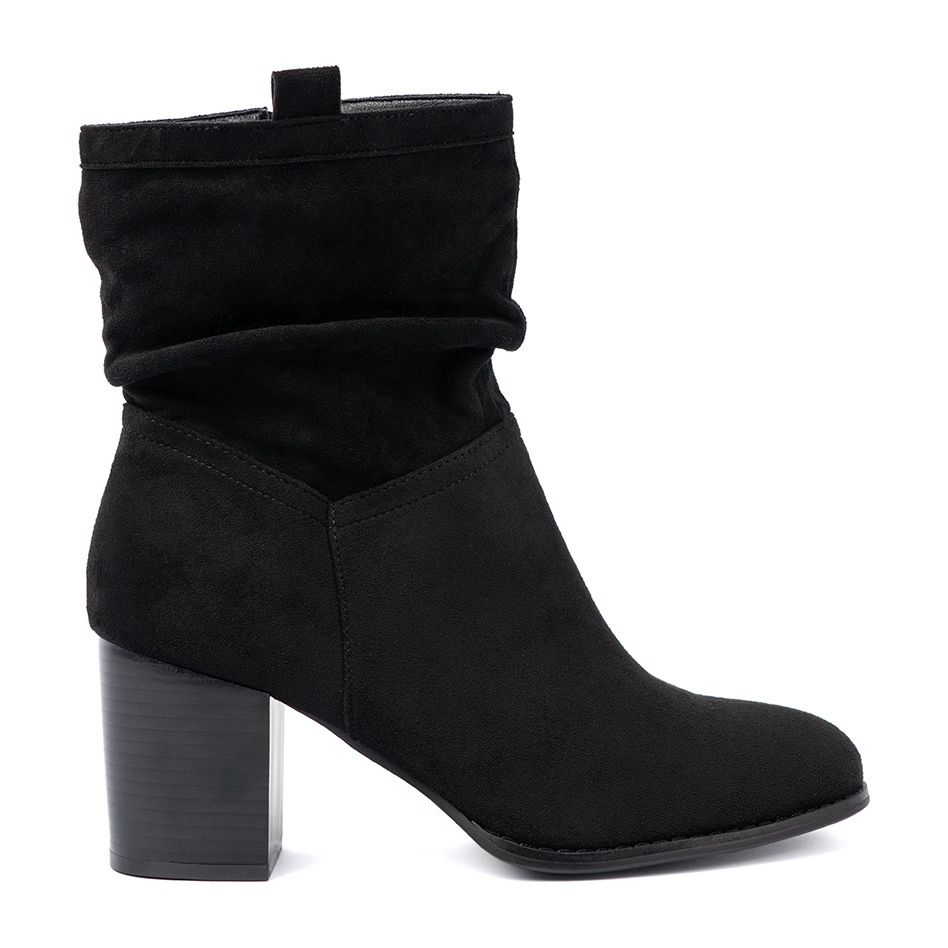 Chráněné postavenou patou, zajišťují stabilitu a pohodlí nošení. Hladká plastová podrážka a 7,5 cm pata ve formě sloupku se vaše nohy budou cítit pohodlně po celý den, bez ohledu na příležitost. Kulatý nos přidává těmto botám jemnosti a vnitřní oteplování zajistí teplo v zimních dnech.