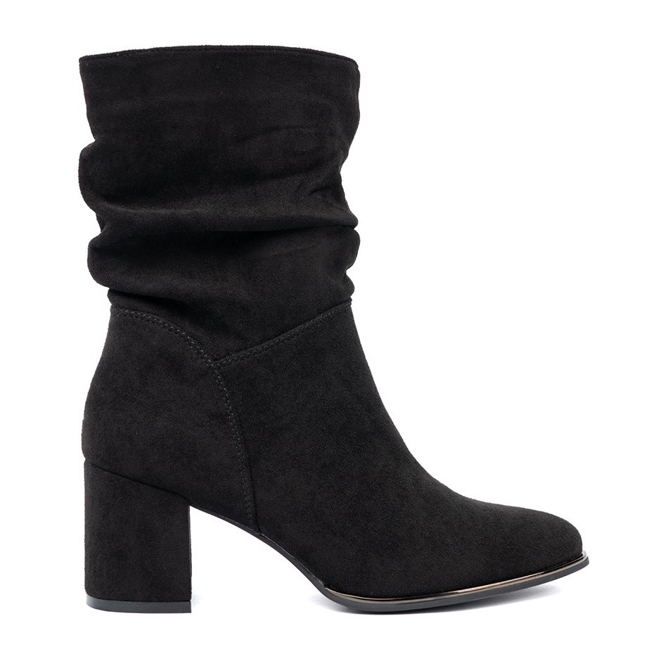 Shelvt Černé semišové boty s elegantním vráskem černý