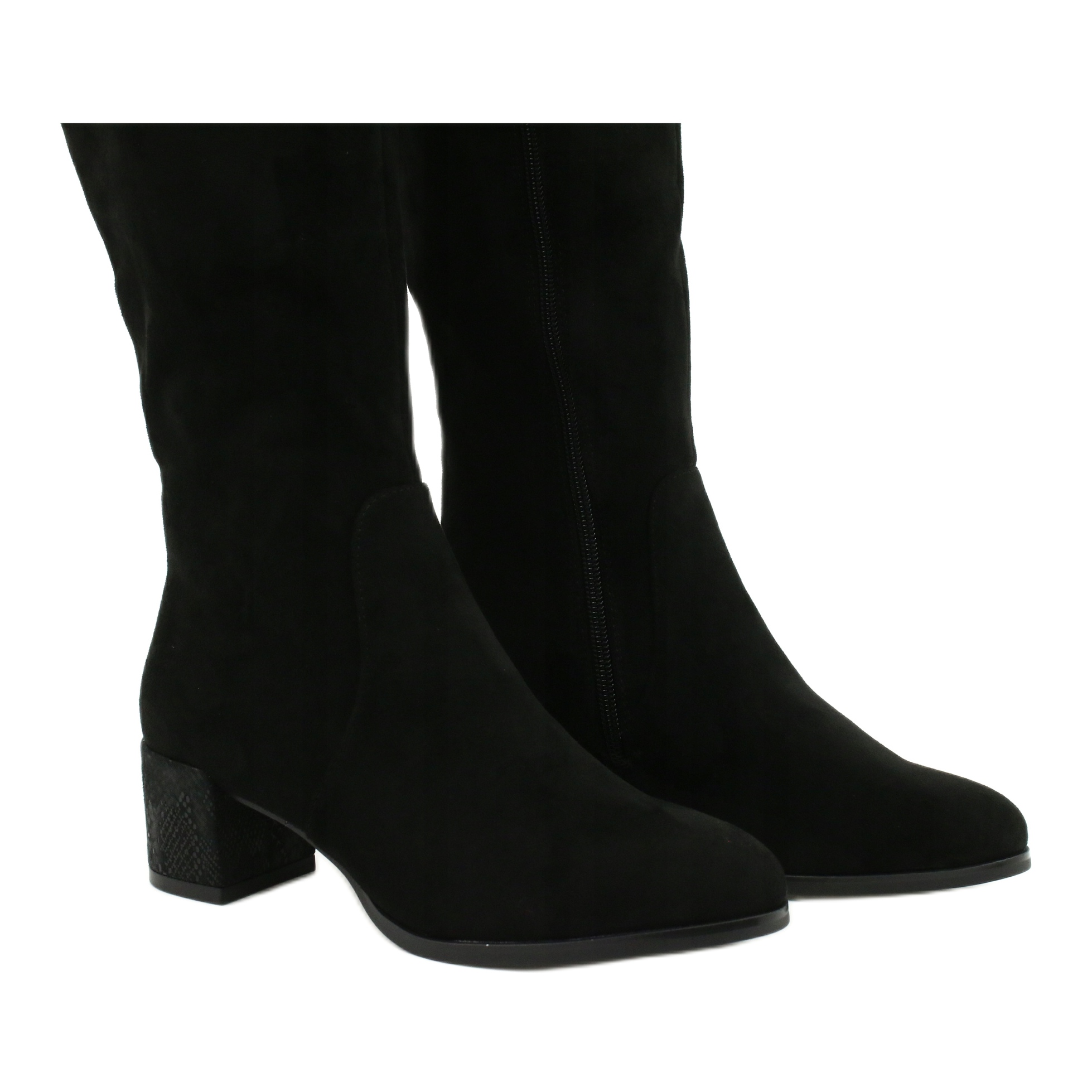 Jejich delší svršek, sahající nad kolena s výškou 55 cm, dodává siluetě štíhlejší vzhled a upoutá pozornost a zajímavý, zvířecí podpatek o výšce 5 cm zajišťuje přiměřené pohodlí. Díky zapínání na zip jsou mimořádně praktické, což z nich dělá ideální volbu jak na každodenní výlety, tak i na formálnější příležitosti.