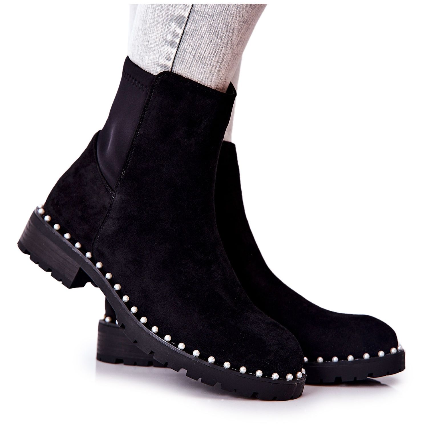 **Semišové kotníkové boty s perlami Black Venie**