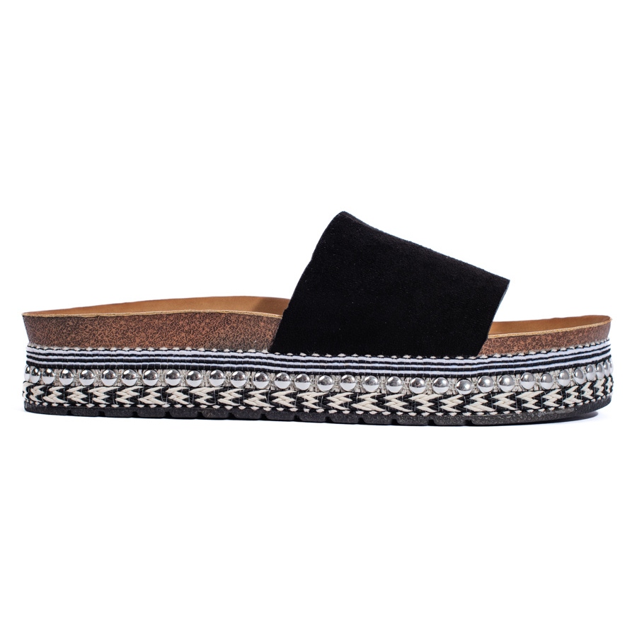 Podrobnosti: Černé semišové klouzačky na platformě černý