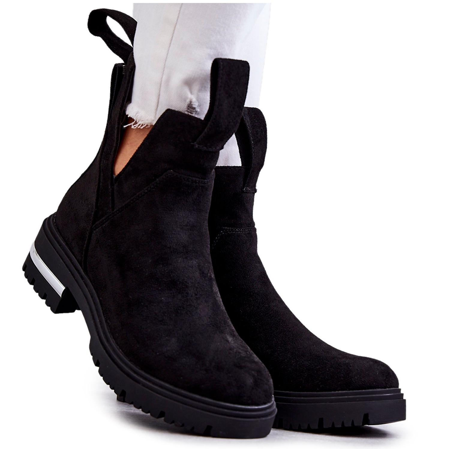 Objevte eleganci a pohodlí s dámskými semišovými kotníkovými botami PS1 s výřezy v klasickém černém odstínu. Tyto stylové boty vyrobené z vysoce kvalitního ekologického semiše jsou perfektní volbou pro každou příležitost. Poutavé výřezy na bocích svršku jim dodávají charakter a poutka vpředu a vzadu usnadňují oblékání.
