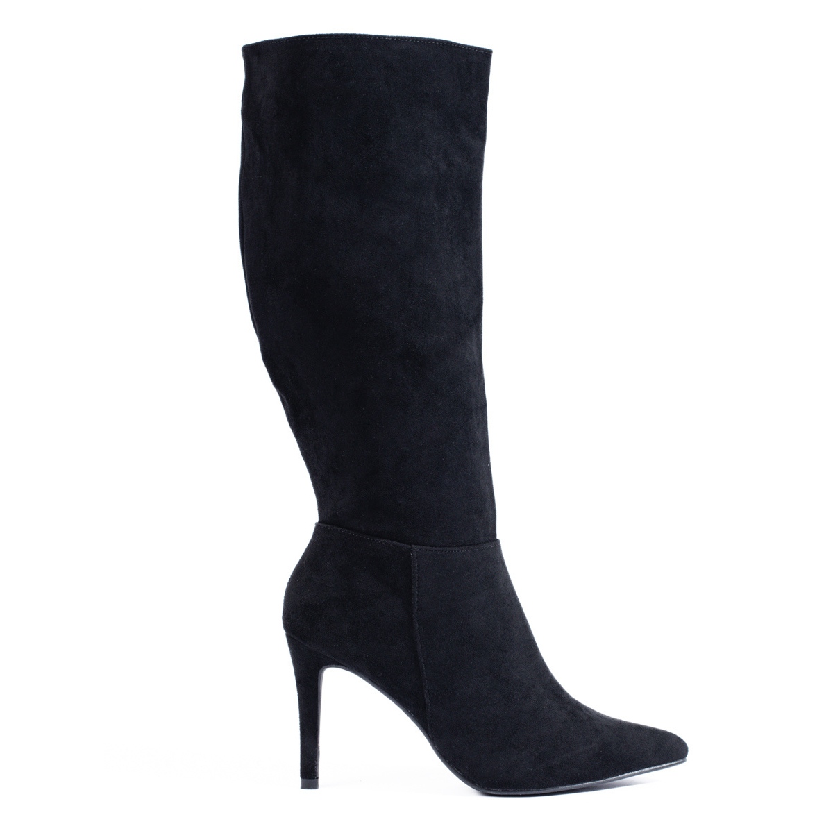 - Modelka: Černé semišové kozačky na vysokém podpatku