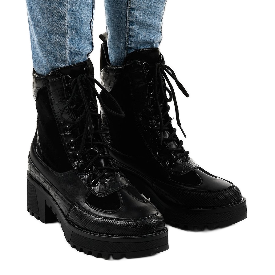 Černé semišové šněrovací boty G-7646 jsou perfektní volbou pro ženy, které chtějí spojit pohodlí s módním stylem. Tyto jedinečné kozačky na vysokém podpatku vyrobené z materiálu podobného semišu potěší svým minimalistickým designem, který se hodí k mnoha různým stylům – každodenním i elegantnějším.