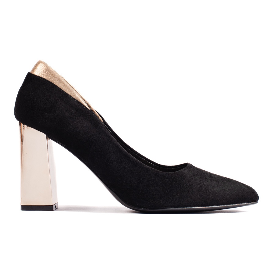 Černé semišové lodičky na sloupku černý