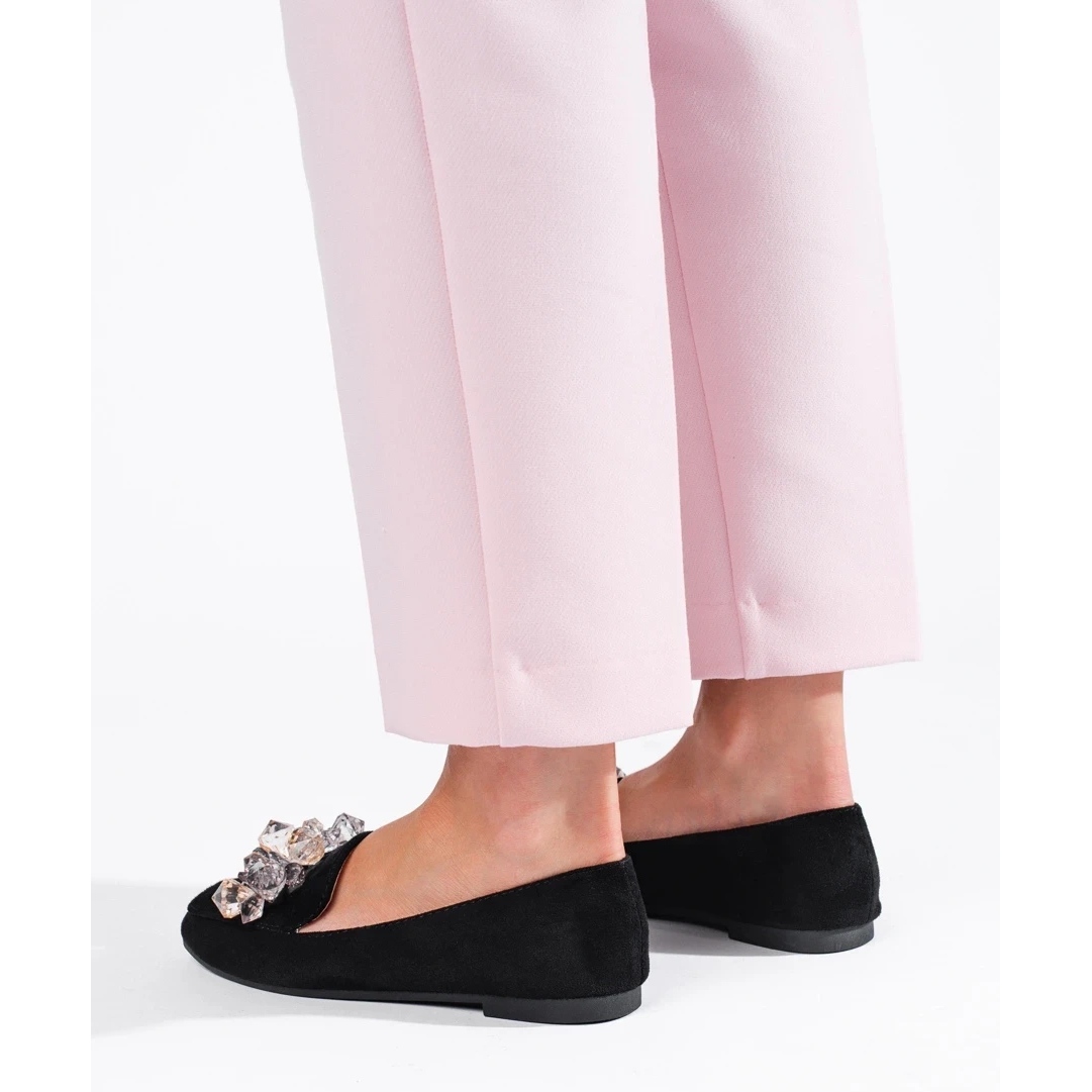 SHELOVET Černé semišové lordy s ozdobnými krystaly Shelovet černá
