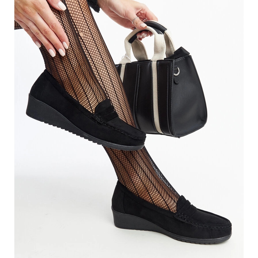 Černé semišové mokasíny Sakena na klínku černý