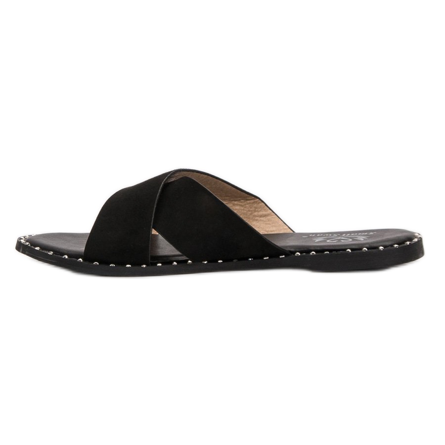 **Small Swan Black Semišové žabky** jsou ideální nabídkou pro ženy, které si cení pohodlí a stylu každý den. Tyto skluzavky, vyrobené z ekologického semiše, kombinují jednoduchost s módními detaily.