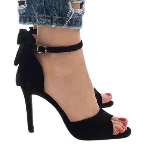 Černé semišové sandály s mašlí LL-280 černý