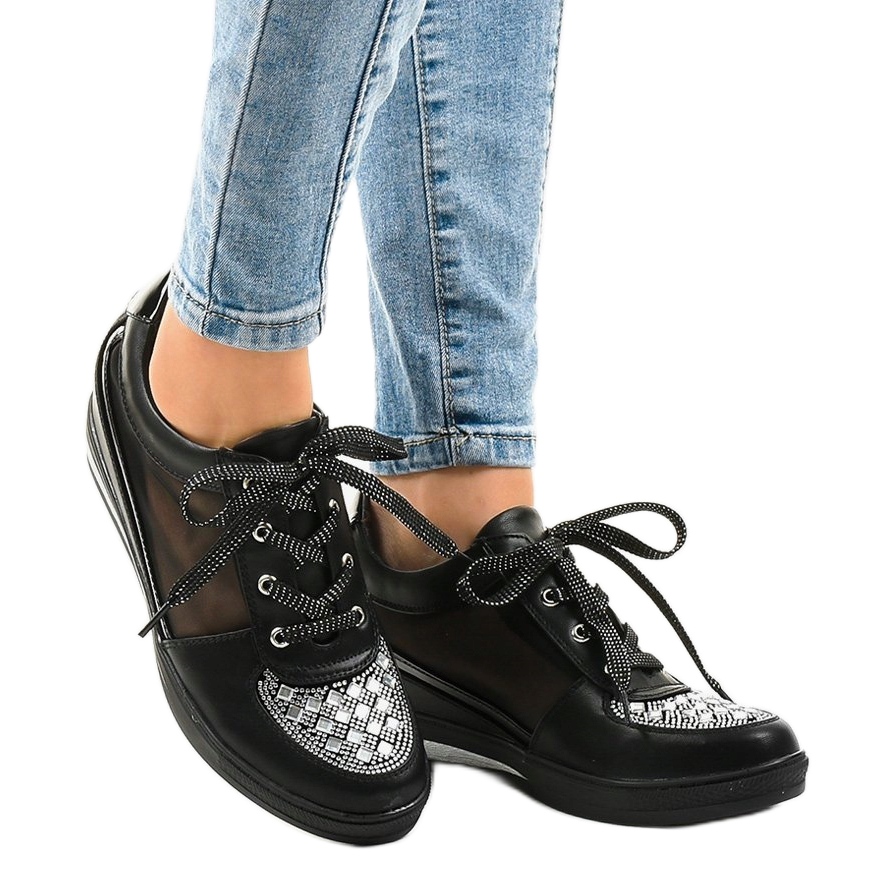 Inna marka Černé síťované tenisky na klínku TL-29 černá