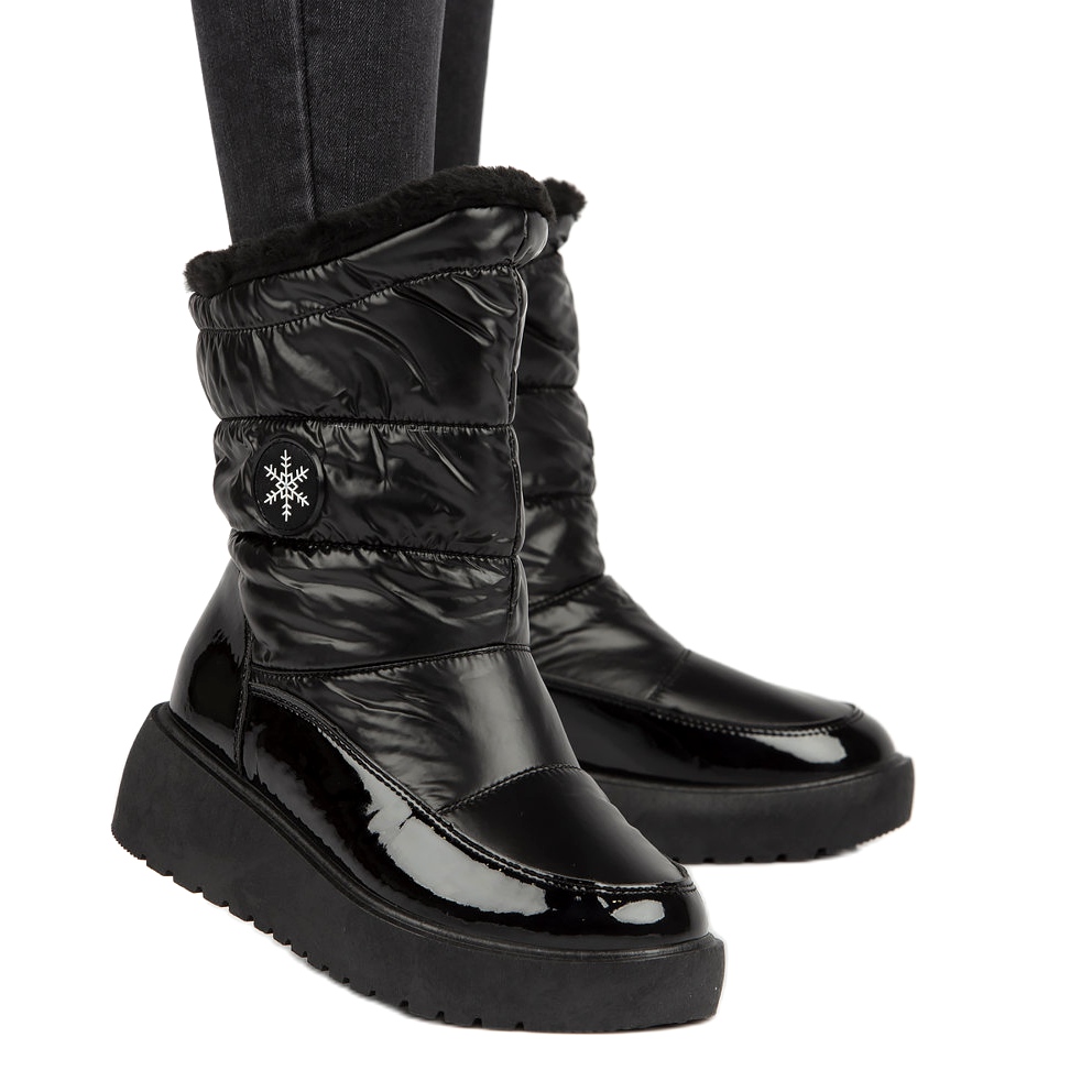 Černé sněhule Filippo DBT3404 Śnieżynka jsou perfektní volbou pro zimní dny, které spojují funkčnost, pohodlí a módní design. Tyto zateplené boty vyrobené z vysoce kvalitní lakované ekologické kůže dokonale odpovídají trendům sezóny a zároveň nabízejí mimořádný komfort a teplo.