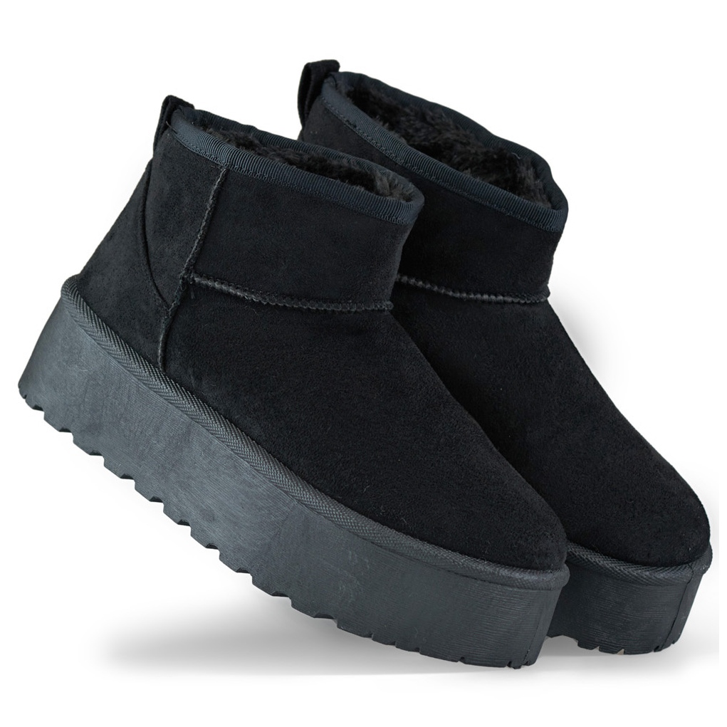 Sněhové boty, vyrobené z vysoce kvalitního ekologického semiše, jsou charakterizovány stylovým horním 9 cm vysokým a 19 cm širokým, což je činí dokonale přizpůsobit se noze. Kulatý nos a nízké podpatky na 4 cm vysoké platformě jim dává nejen eleganci, ale také stabilitu na kluzkých površích.