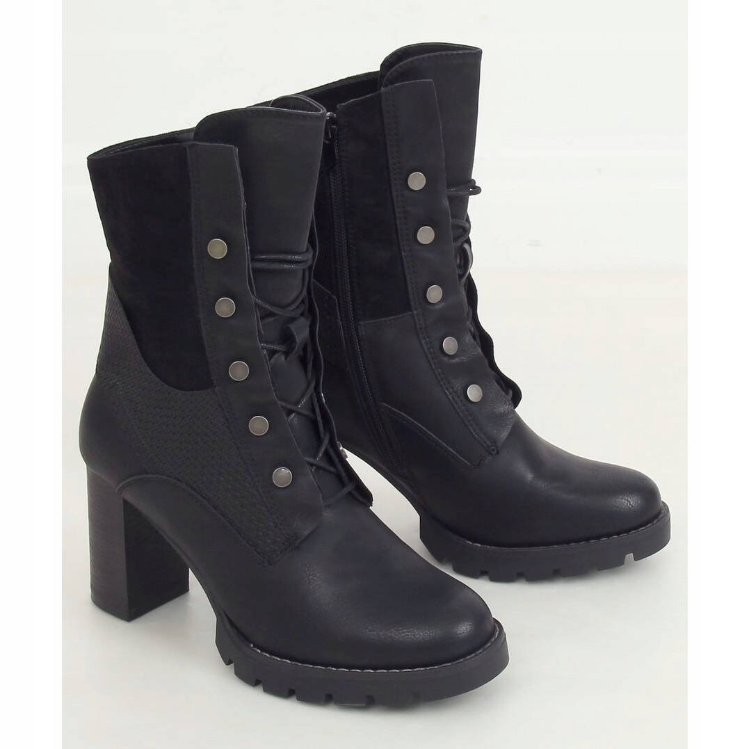 ### Šněrovací kotníkové boty na vysokém podpatku Black 1213GA Black