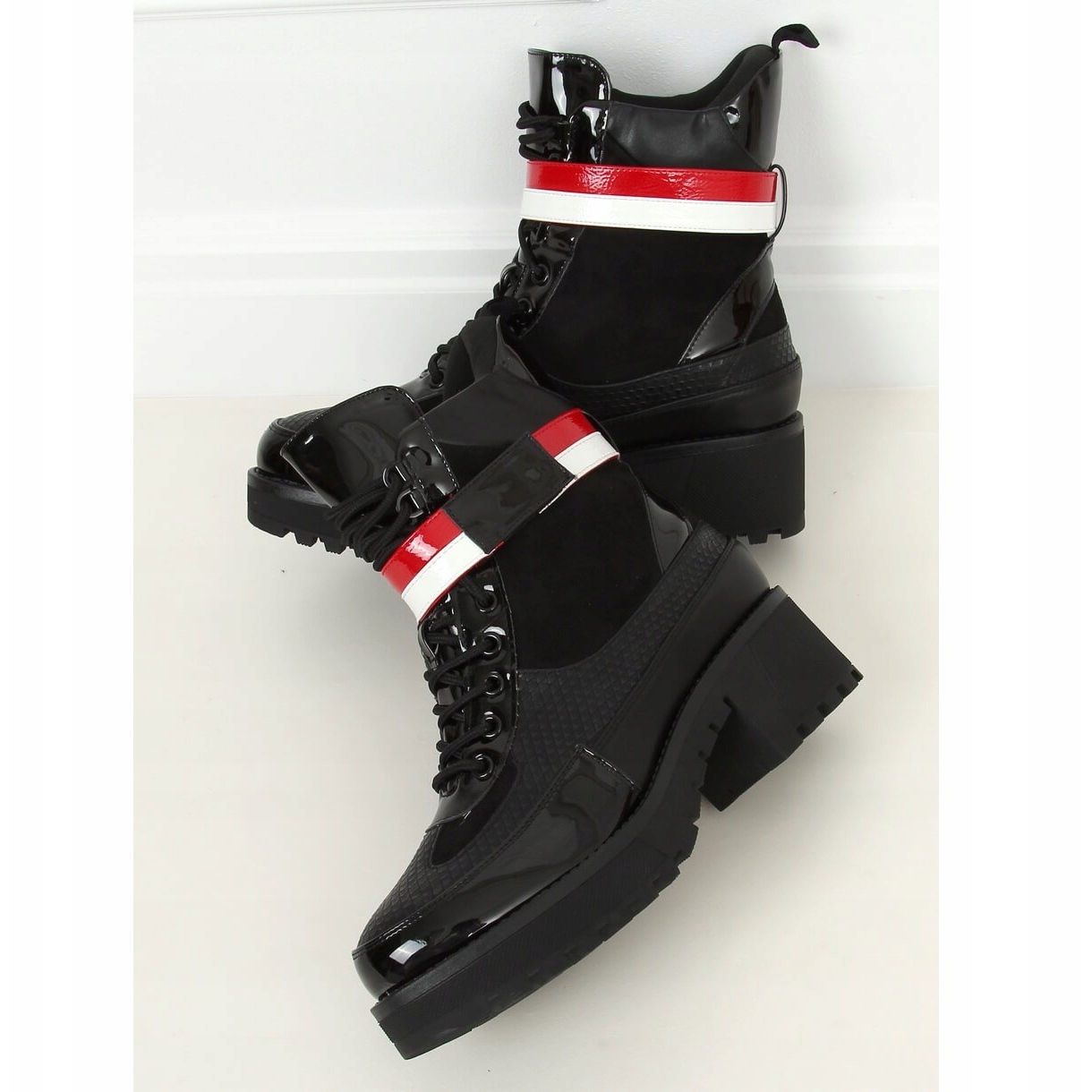 Podrobnosti: Černé šněrovací dámské boty NS086 Black bílý černý červený