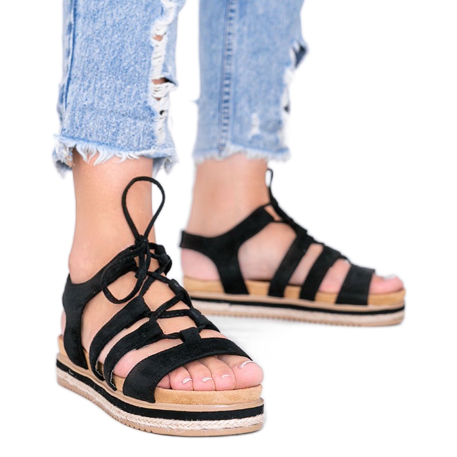 Černé šněrovací sandály Layla černý
