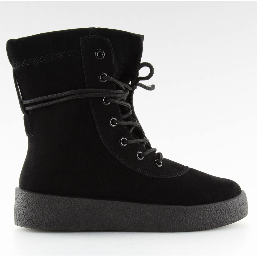 Klasické, černé dámské kotníkové boty sportovního charakteru, ideální pro každodenní nošení. Vyrobeny výhradně z ekologického semiše, s měkkou, pěnovou podšívkou - poskytují teplo a pohodlí i při nižších teplotách. Pevná, vysoce syntetická podešev účinně izoluje od chladu a dodává stabilitu při chůzi.
