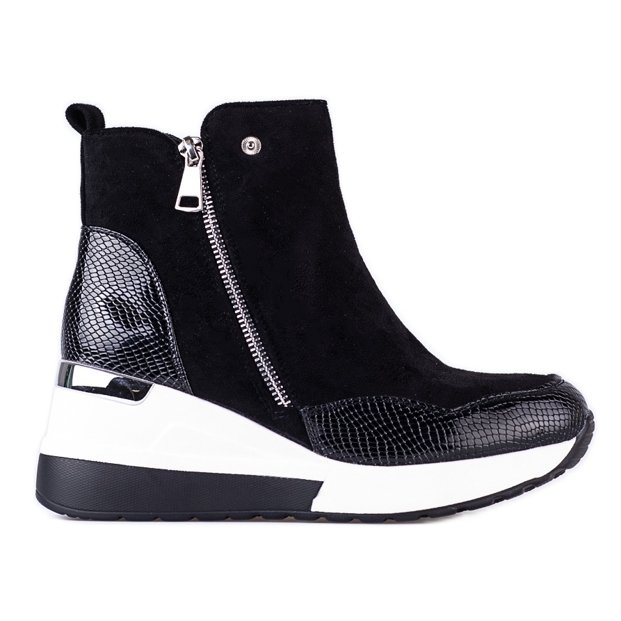 Podrobnosti: Černé sportovní dámské kozačky na bílém klínku Shelovet černá