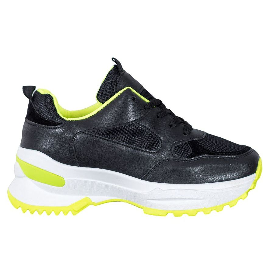 Jedná se o černé sportovní tenisky SHELOVET, které jsou dokonalou kombinací stylu a pohodlí. Tyto jedinečné dámské boty se vyznačují neonově žlutými akcenty, které jim dodávají moderní charakter. Masivní, 6centimetrová platforma jim dodává nejen módní vzhled, ale také zvyšuje pohodlí a jsou tak skvělou volbou pro každodenní nošení.