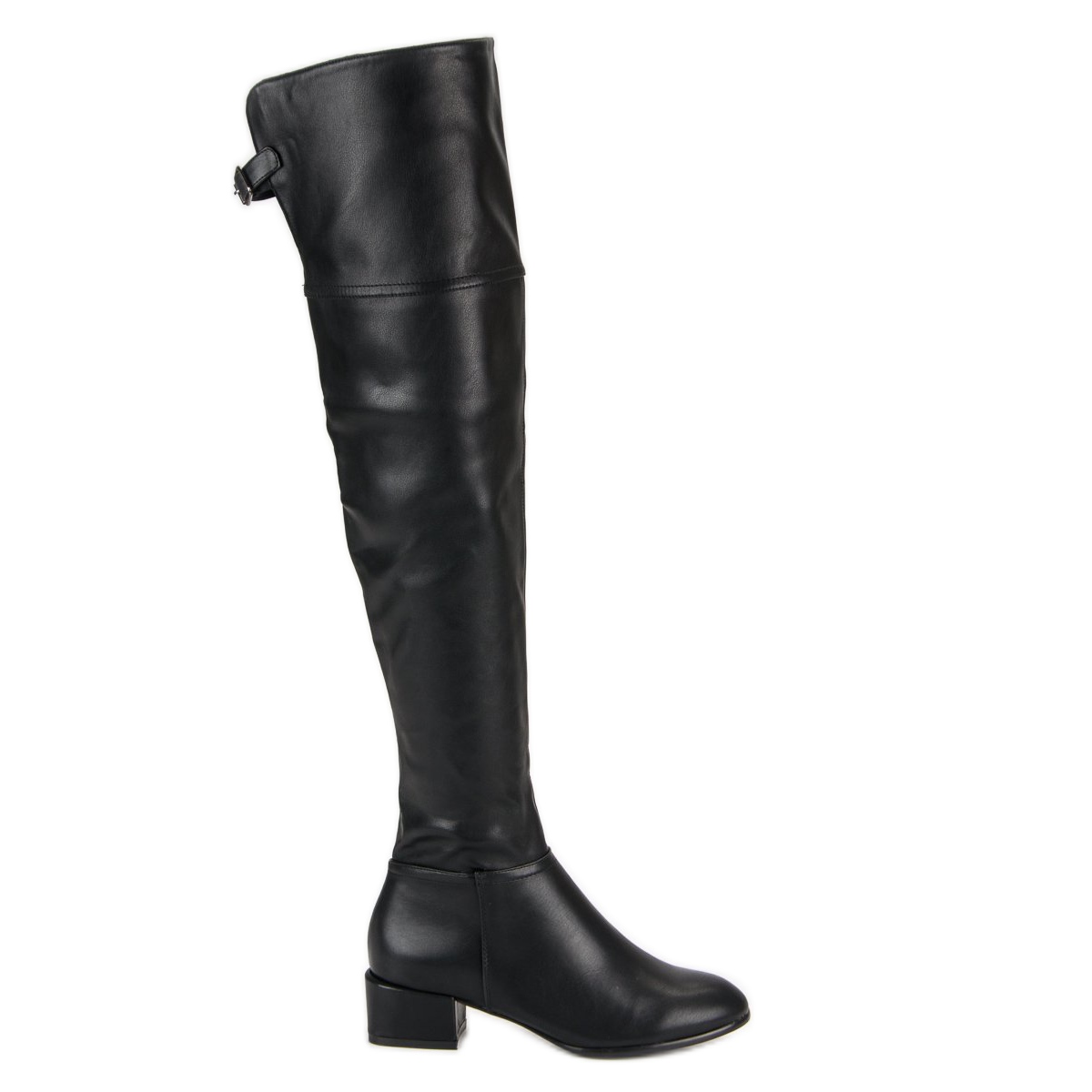 Inna marka Černé stehenní boty na nízkých podpatcích černá