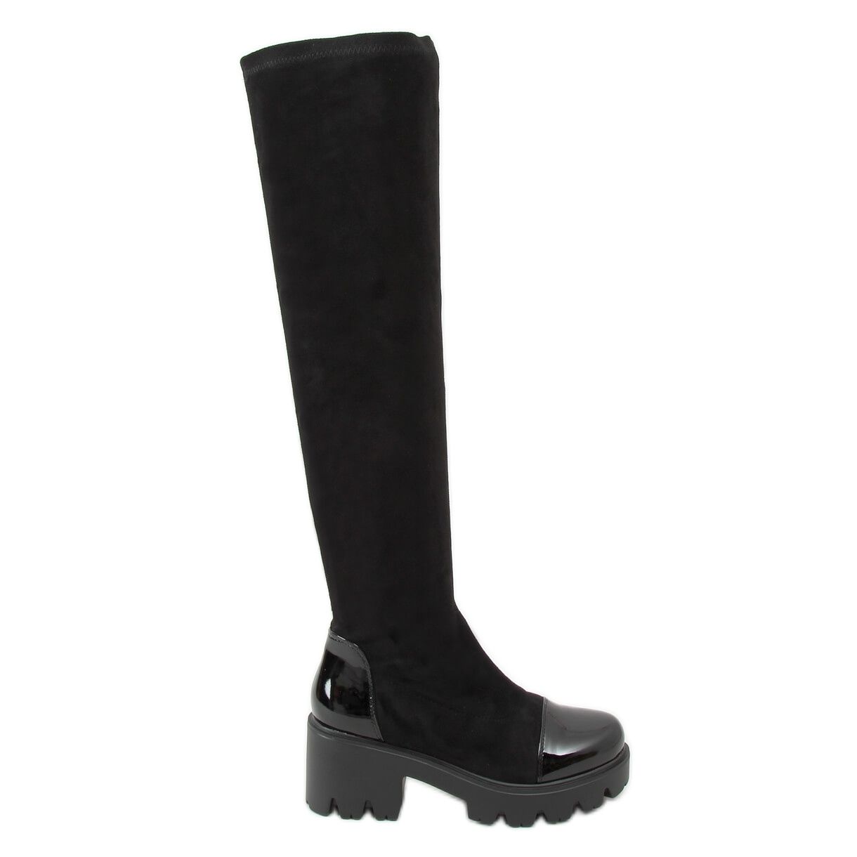 Inna marka Černé stehenní boty s hrubou podrážkou CH19209 Black černá