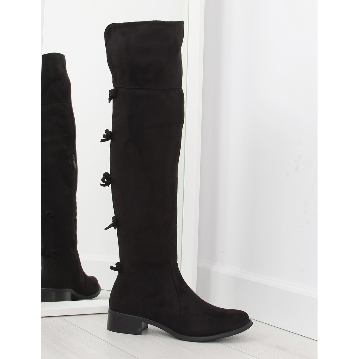 Podrobnosti: Černé stehenní boty s mašlí černý