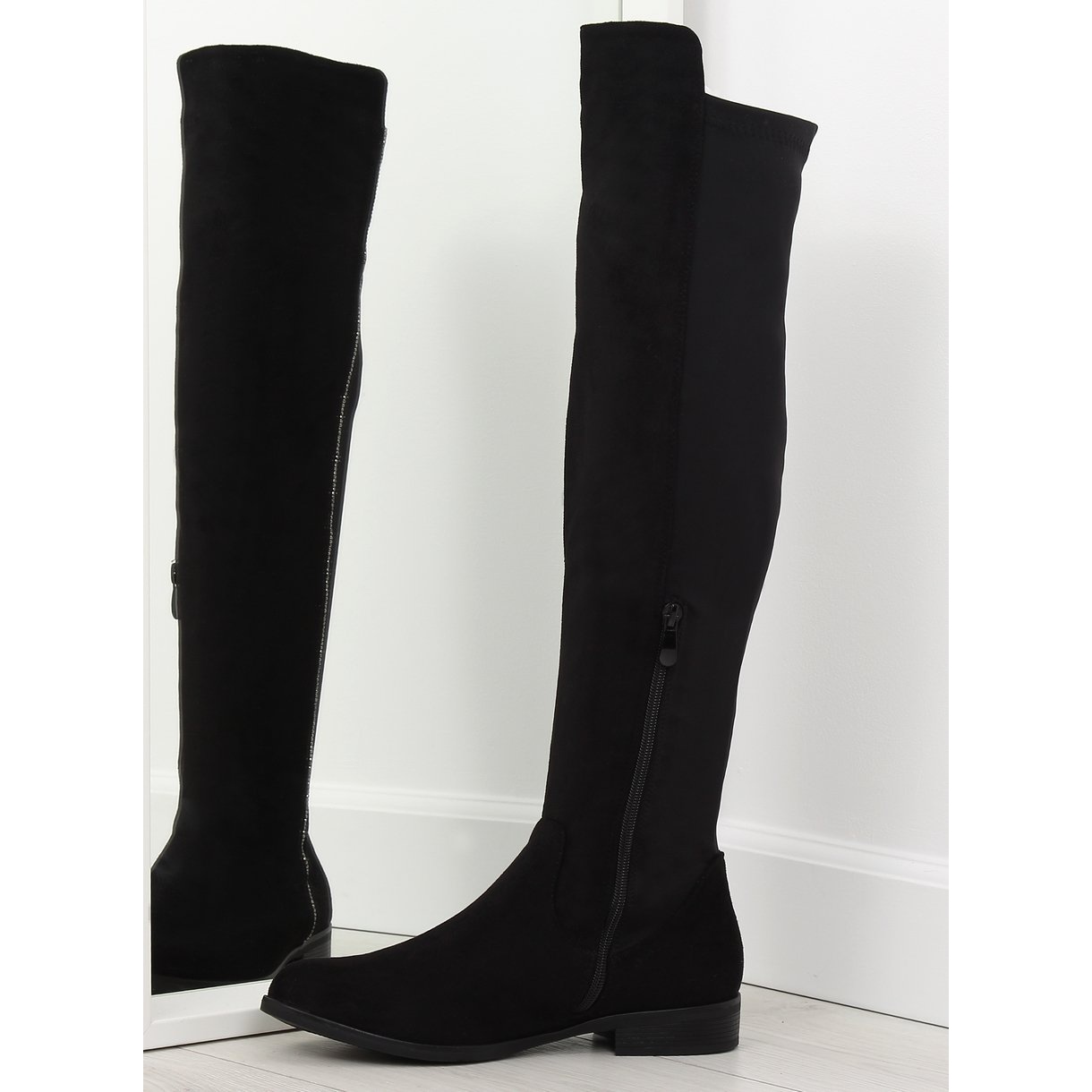 Inna marka Černé stehenní vysoké elastické boty 168-188 Black II-GAT černá