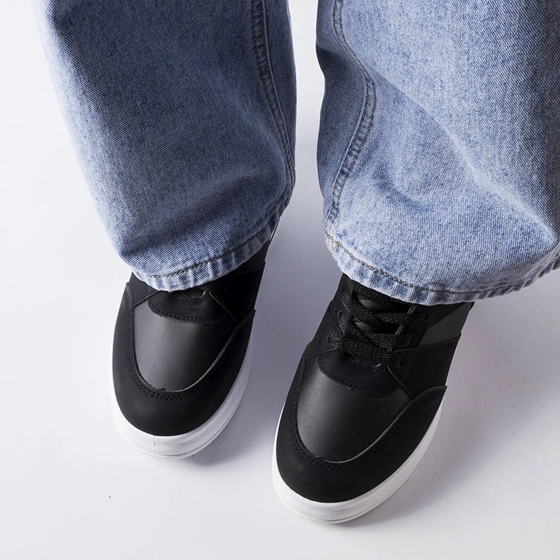 Černé tenisky na Wedge Cinqmars je návrh pro ženy, které si cení současného designu kombinované s pohodlím. Vyrobeno z ekologické kůže s gumou, bílou podrážkou, fungují dobře jak v každodenních městských stylizacích, tak v nečekaném dešti. Průměrný klín (přibližně 6 cm) jemně rozšiřuje číslo a nízký řez (výška horního přibližně 13 cm) zajišťuje svobodu pohybu.