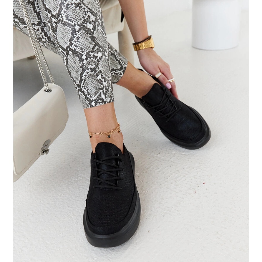 Výška platformy 3,5 cm přidává jemnou eleganci a černé barvy způsobují, že tyto tenisky dokonale mísí s různými stylizacemi. Lori tenisky vyrobené z vysoce kvalitní ekologické semišové kůže nejsou jen módní volbou, ale také šetrná k životnímu prostředí.