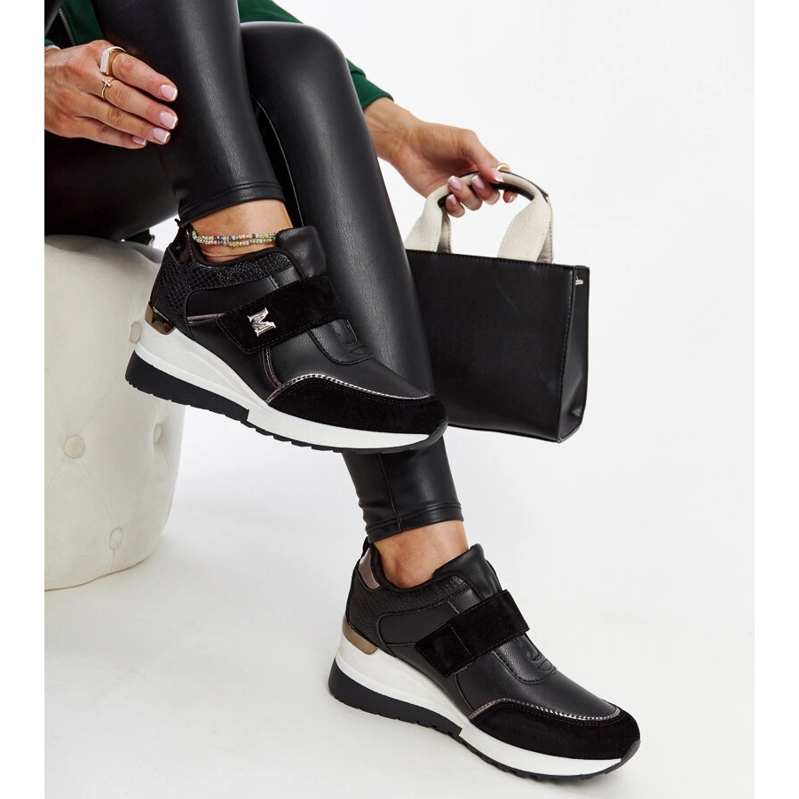 Inna marka Černé tenisky na klínku se zapínáním na suchý zip Libuše černá