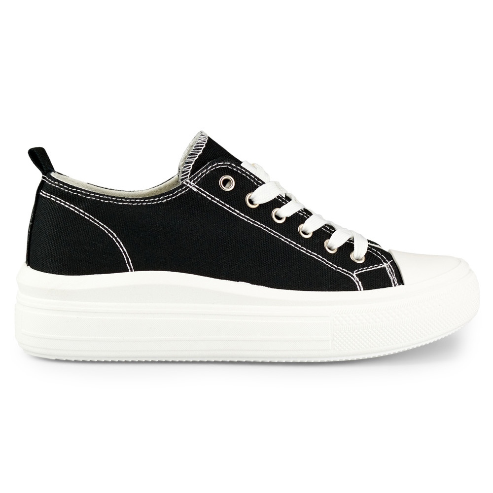 Černé tenisky na nízké platformě - Univerzální a stylová ženská obuv z kolekce Keeshoes. Klasická, kulatý nos, šněrování a 4 cm platforma přidávají několik centimetrů bez ztráty pohodlí, díky kterému bude model každý den fungovat skvěle na jaře/letní sezóně.