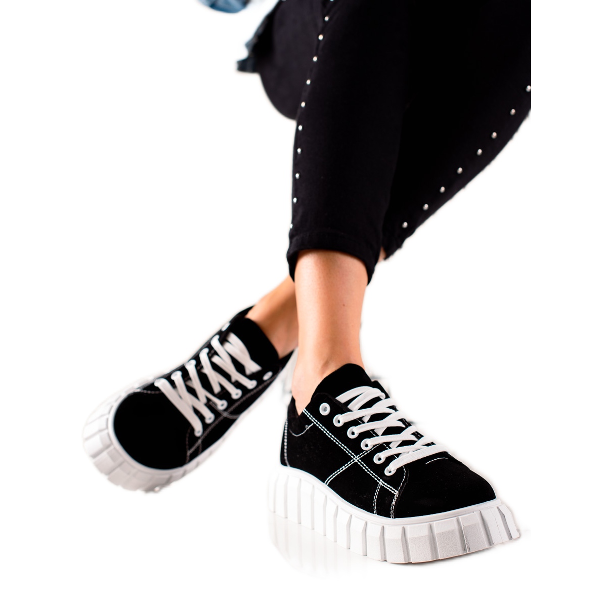 Černé tenisky na platformě TRENDI nesmí chybět v žádném šatníku. Díky jednoduchému, ale efektnímu designu budou perfektním doplňkem jak každodenních, tak i elegantnějších outfitů. Ideální na nákupy, na procházku nebo na setkání s přáteli, tyto tenisky jsou volbou, která jistě zaujme.