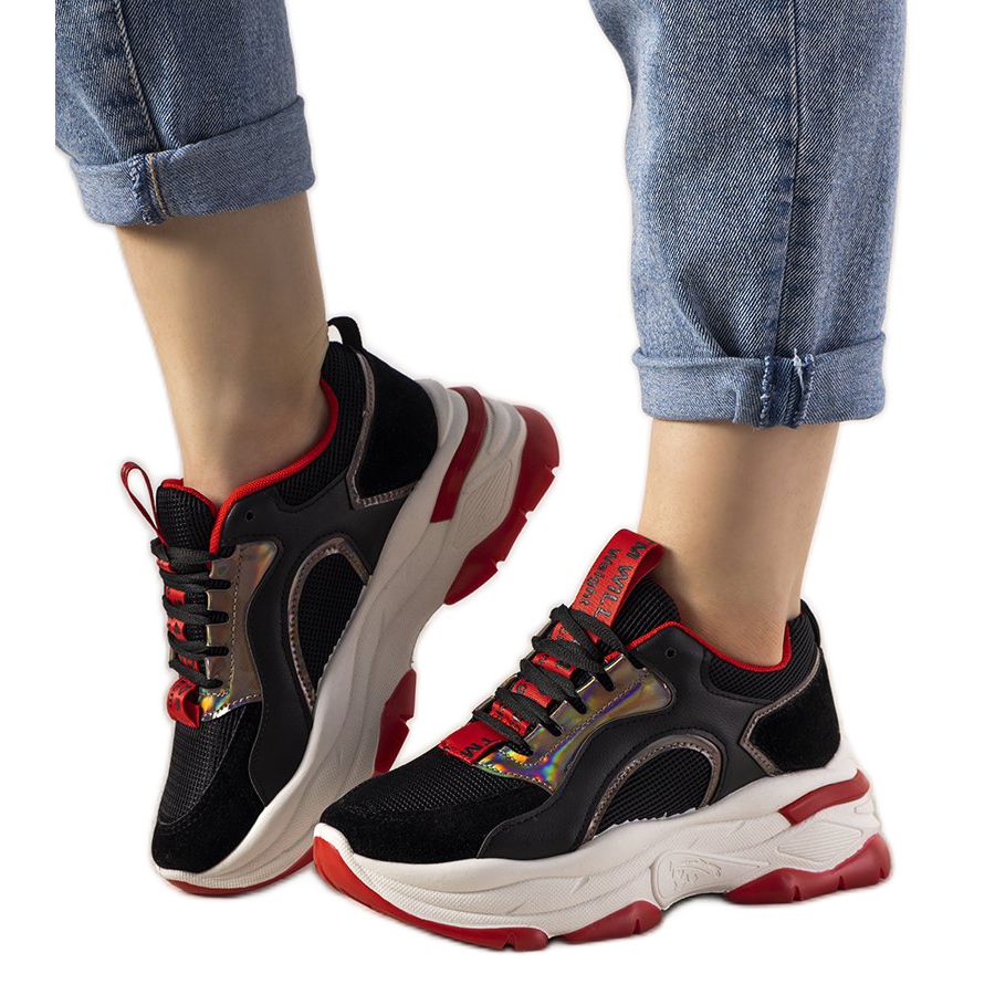 Černé tenisky Freedom s holografickými vložkami nesmí chybět ve vašem šatníku, pokud si ceníte stylu a pohodlí každý den. Tato sportovní obuv kombinuje módní design s funkčností a dokonale se hodí k různým stylům. Kombinace černé s červenou a holografickými akcenty jistě upoutá pozornost a dodá charakter každému outfitu.