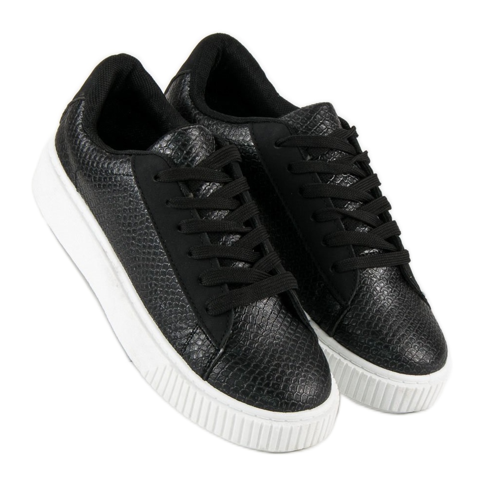 Objevte módní dámské sportovní tenisky v elegantní černé barvě. Jejich svršek vyrobený z materiálu imitujícího hadí kůži dodává originalitu a charakter každému stylingu. Tyto jedinečné boty jsou perfektním doplňkem k mladistvým módním outfitům a zároveň se skvěle hodí k elegantnějším kombinacím.