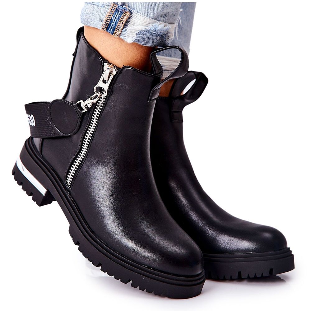 PS1 Černé teplé kožené boty Cortona se zipem černý