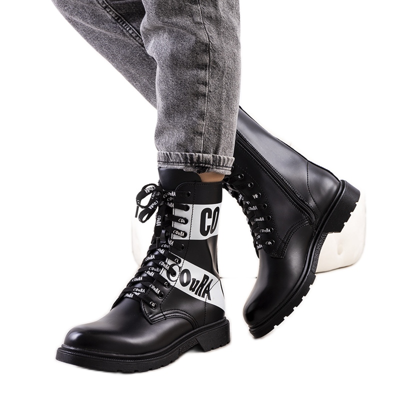 Černé boty 8069 bot zdobených mota nápisy - musí mít na podzim