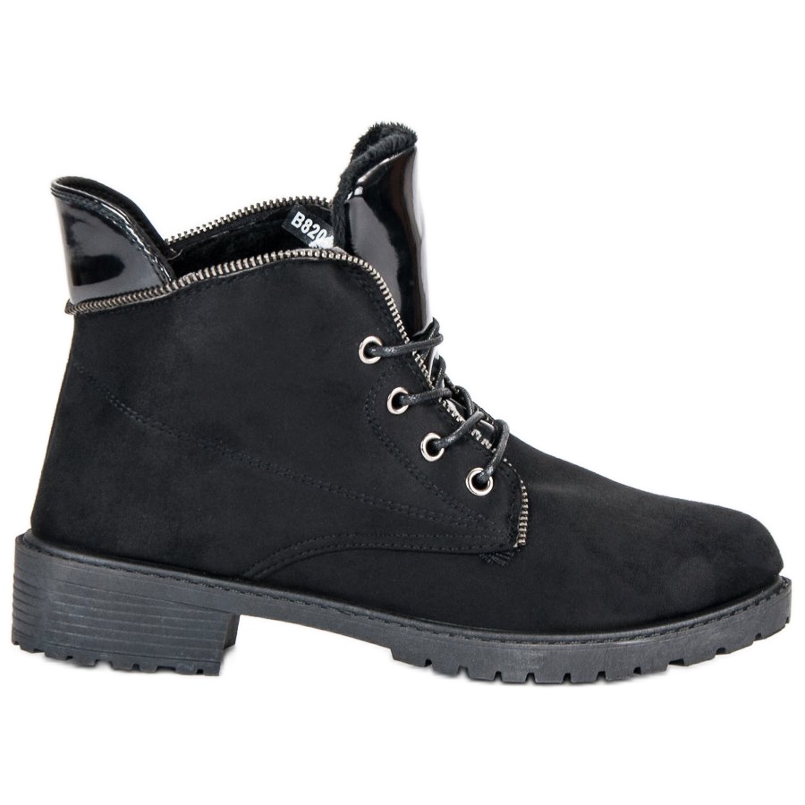 Objevte eleganci a pohodlí se šněrovacími kotníčkovými botami Balada v černé barvě - perfektní volba pro podzimní a zimní dny. Tyto stylové boty vyrobené z kvalitního ekologického semiše a lakované kůže kombinují moderní design s praktickým zateplením s dekou na boty, díky čemuž jsou perfektní i v chladnějších dnech.