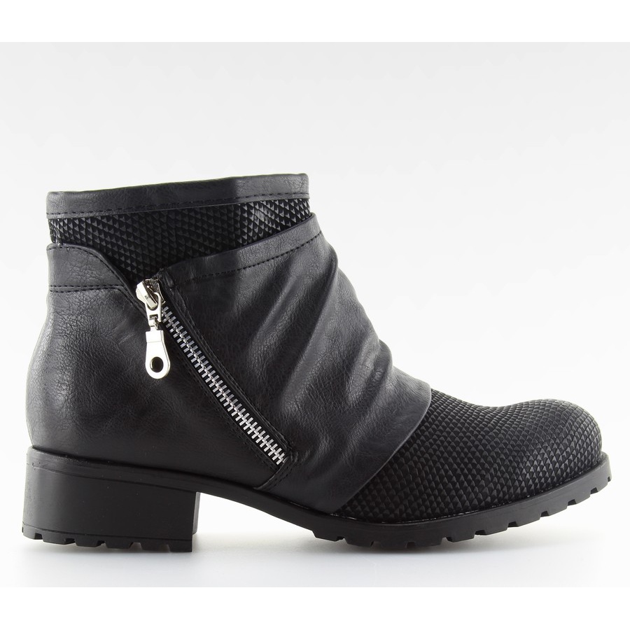 Černé vojenské boty 669 jsou perfektní volbou pro ženy, které oceňují styl a pohodlí. Tyto kotníkové boty vyrobené z vysoce kvalitní ekologické kůže kombinují moderní design s funkčností. Originální střih s šipkou v přední části svršku jim dodává jedinečný charakter a rozmanitost textur – hladká zrnitost a reliéfní geometrická – je odlišuje od ostatních modelů.