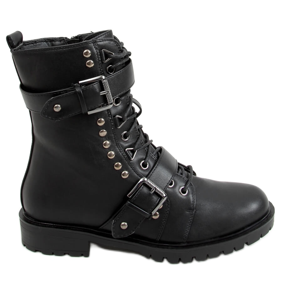 Černé vojenské boty B063-11 Black jsou ideální volbou pro ženy, které si cení pohodlí a stylu. Tyto šněrovací ploché kozačky kombinují módní design s funkčností, díky čemuž jsou skvělou volbou pro každodenní nošení.