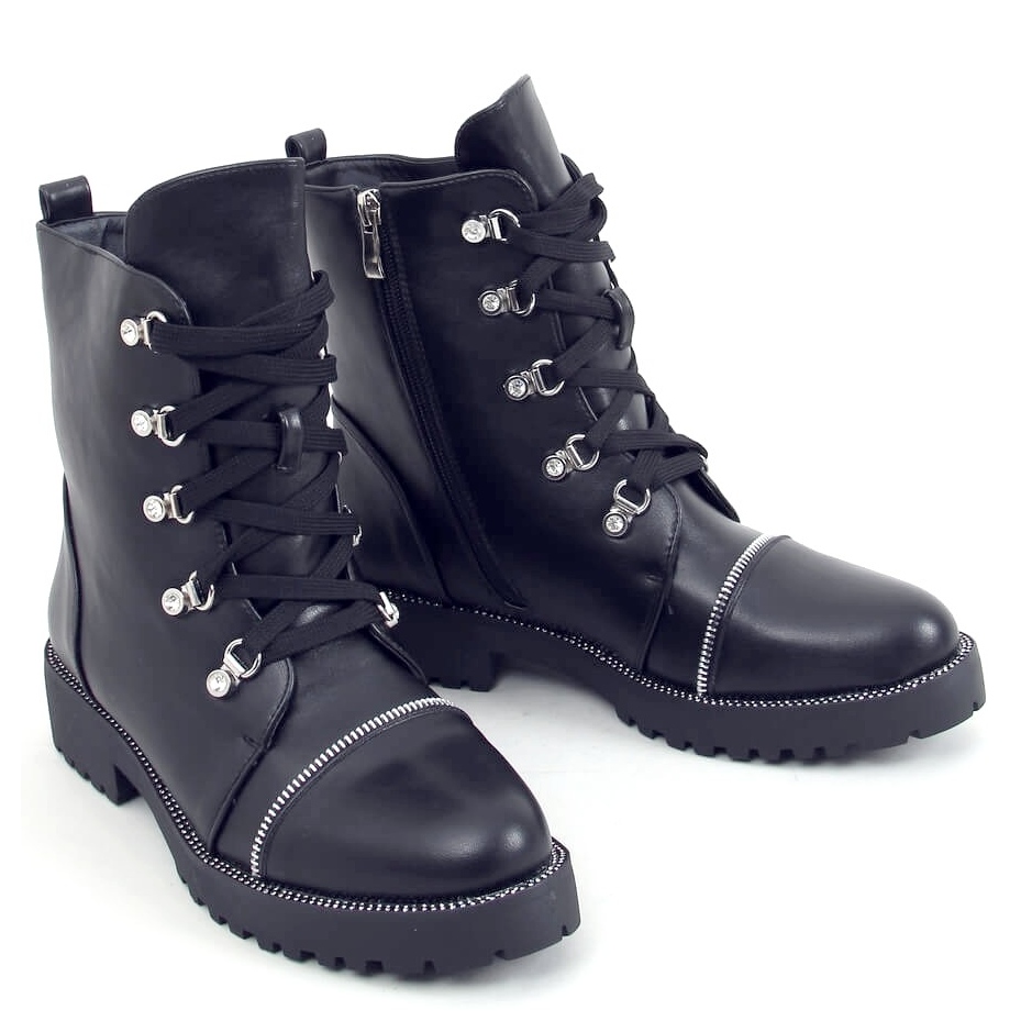 Vojenské boty Balboa Black jsou perfektní volbou pro ženy, které ocení módní a extravagantní řešení. Tyto černé šněrovací kotníkové boty zaujmou nejen svým designem, ale také jedinečnými detaily. Ozdoby v podobě lesklých kamínků na poutkách a lemu zdobené zirkony jim dodávají elegantní a stylový charakter a zajistí, že vyniknete v každé společnosti.