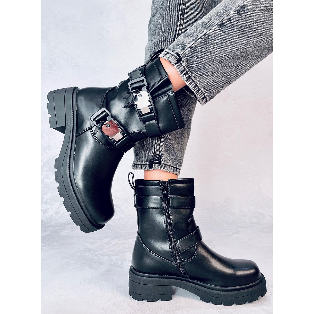 Produktem jsou kotníkové boty pro ženy. Představují vojenský styl pro každodenní použití. Tyto boty jsou černé, vyrobené z obilného materiálu s látkou jako svrchním materiálem. Zdobí je přezky ve vojenském stylu a zapínání na zip, díky čemuž jsou nejen módní, ale i praktické. Pěnová podšívka poskytuje pohodlí a kulatá špička a bloková pata dodávají všestrannost. Tyto boty jsou vhodné pro lidi, kteří preferují boty, které sahají nad kotník. Výška platformy a podpatku je 5 cm. Dominantním vzorem na botách je chybějící vzor. Kód produktu výrobce je BM184467. Tyto boty jsou dodávány v originálním balení výrobce, kterým je krabice. Tyto boty jsou primárně pro ženy. Jednou z jejich zajímavostí je zateplení, které z nich dělá ideální volbu do chladnějších dnů.