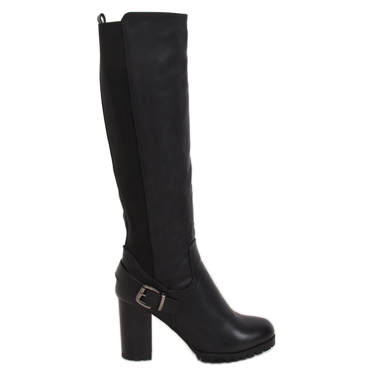 Inna marka Černé vysoké boty na podpatku BM16 Black - Ii Gat černá