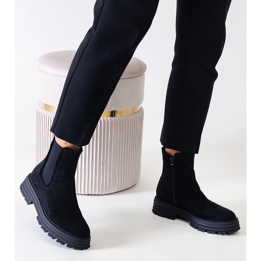 Inna marka Černé vysoké kozačky na silné eko-semišové platformě Sabra černá
