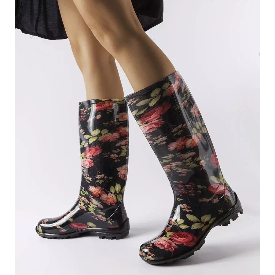 Černé vysoké kozačky s pimenskými růžemi - kombinace elegance a ochrany před deštěm