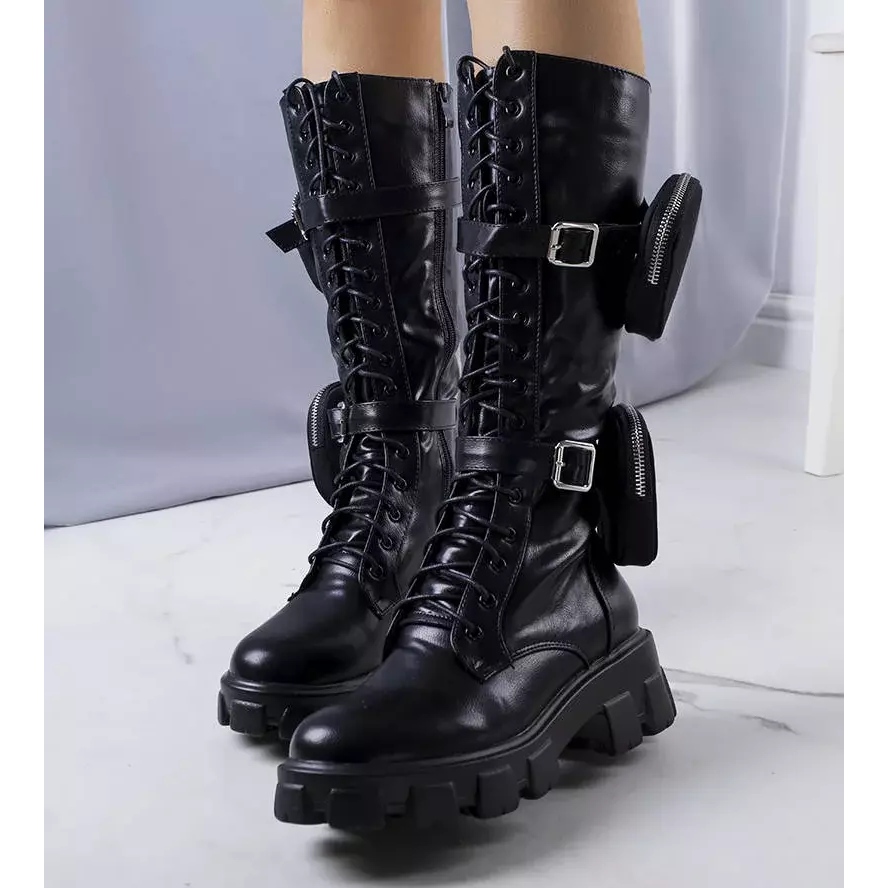 Černé vysoké kozačky s řetízkem od Nererin černý