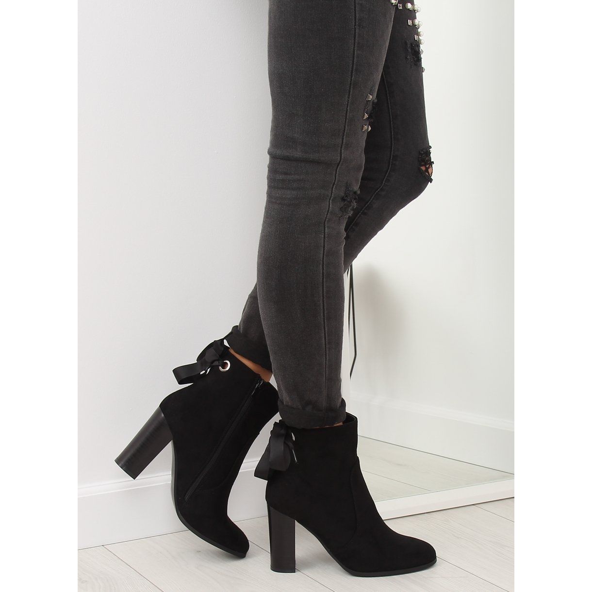 Objevte eleganci a pohodlí s černými kotníčkovými botami na vysokém podpatku 1331 Black. Tyto stylové dámské kozačky se vyznačují úzkým střihem, který dokonale zvýrazní postavu. Ozdobné šněrování v zadní části svršku jim dodává jedinečný charakter a rovný podpatek - 9 cm vysoký blok - kombinuje módní vzhled s mimořádnou stabilitou.