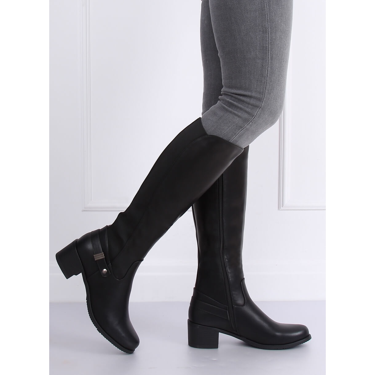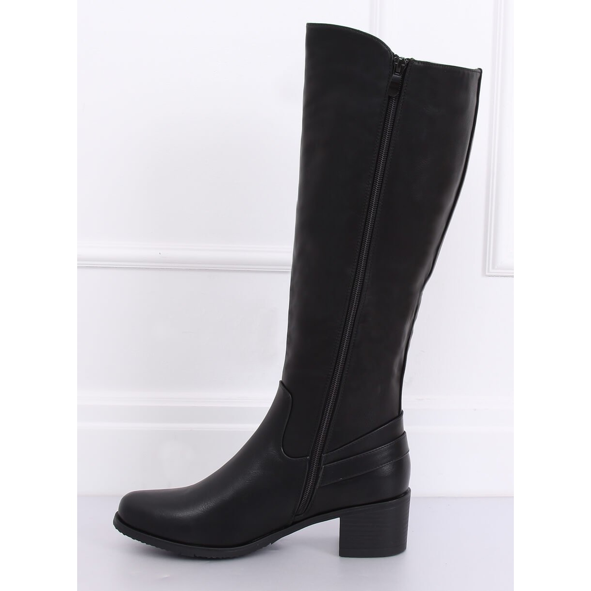 Elegantní, černé ženské boty na nízké, stabilní patě s výškou 5,5 cm. Klasický řez kulatým nosem bude fungovat skvěle každý den a pro více tlumených stylů. Elastická část horního zaručuje lepší přizpůsobení tele a praktické upevnění zipu usnadňuje oblékání a odstranění bot.